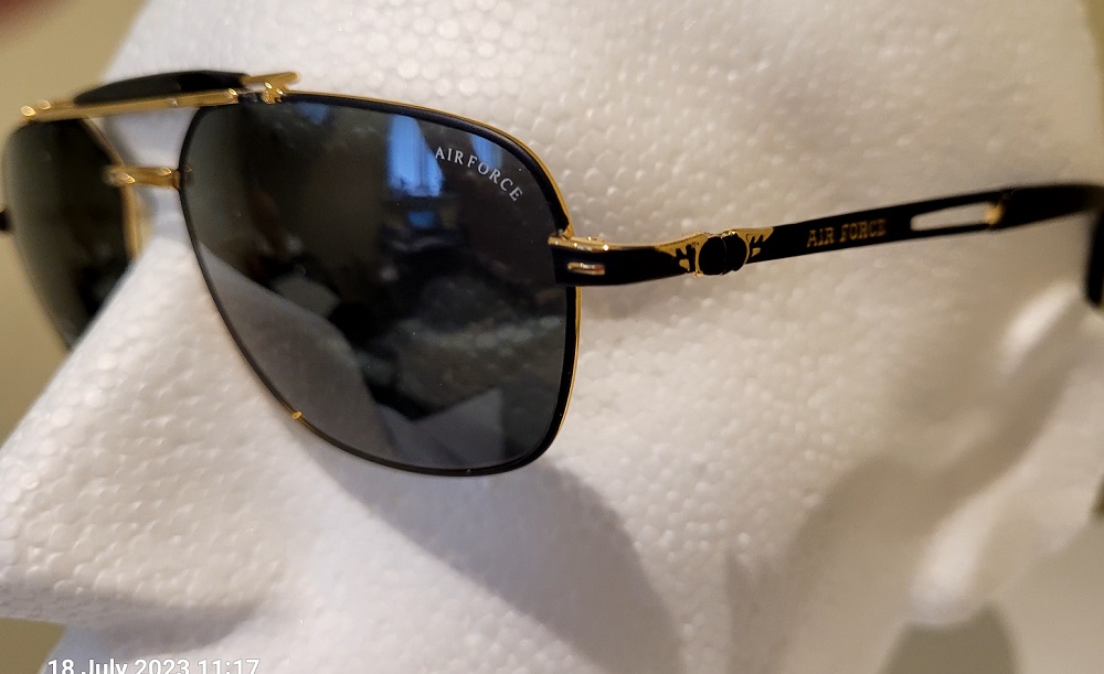 Temple ends also have black acetate end side tips and the side temples have the familiar Gold Embossed Air Force Logo