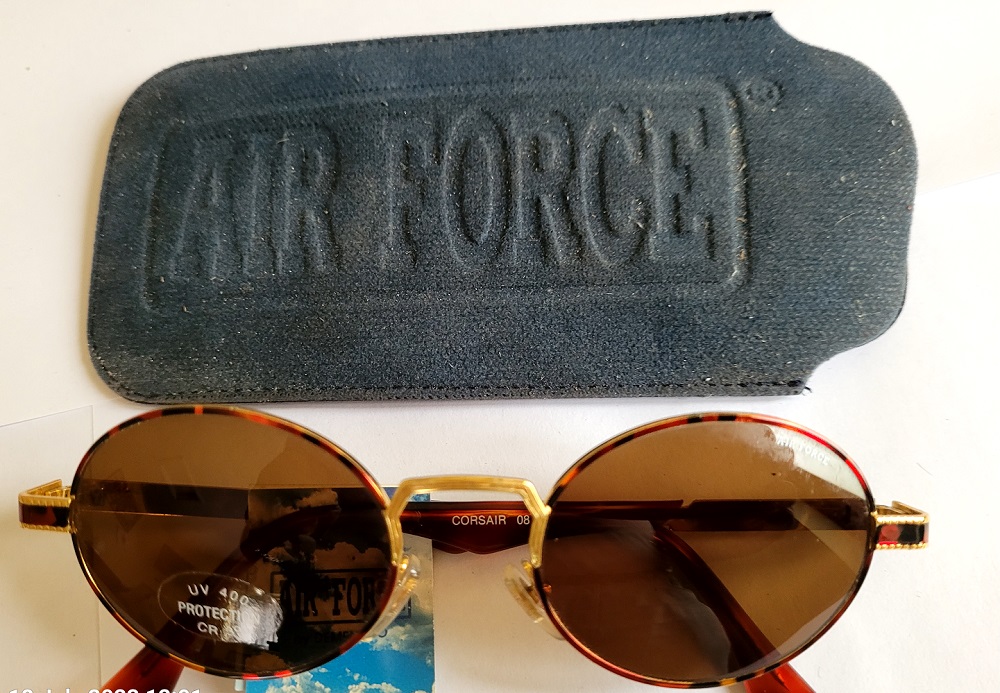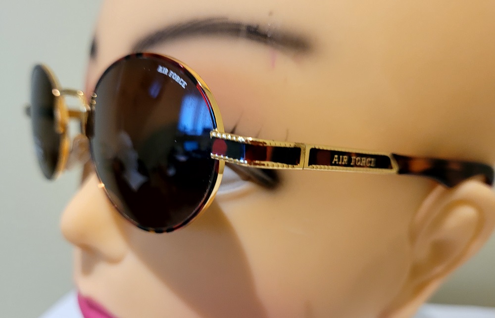 Temple ends also have tortoiseshell acetate end side tips and the side temples have the familiar Gold Embossed Air Force Logo